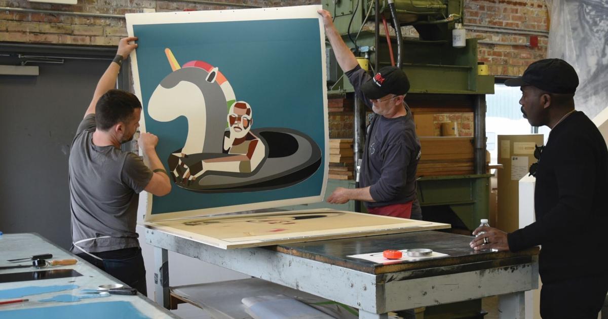 Adams’ latest exhibition, “Silver Linings: The Prints of Derrick Adams,” showcases nearly 20 vibrant prints created in collaboration with Tandem Press, a well-known fine art printmaking studio in Madison. This exhibition runs at 1743 Commercial Ave. through December 19, offering attendees a chance to experience Adams’ distinctive color palette and geometric shapes firsthand. The prints are emblematic of Adams’ signature style and thematic engagement, effectively capturing contemporary Black life and culture.