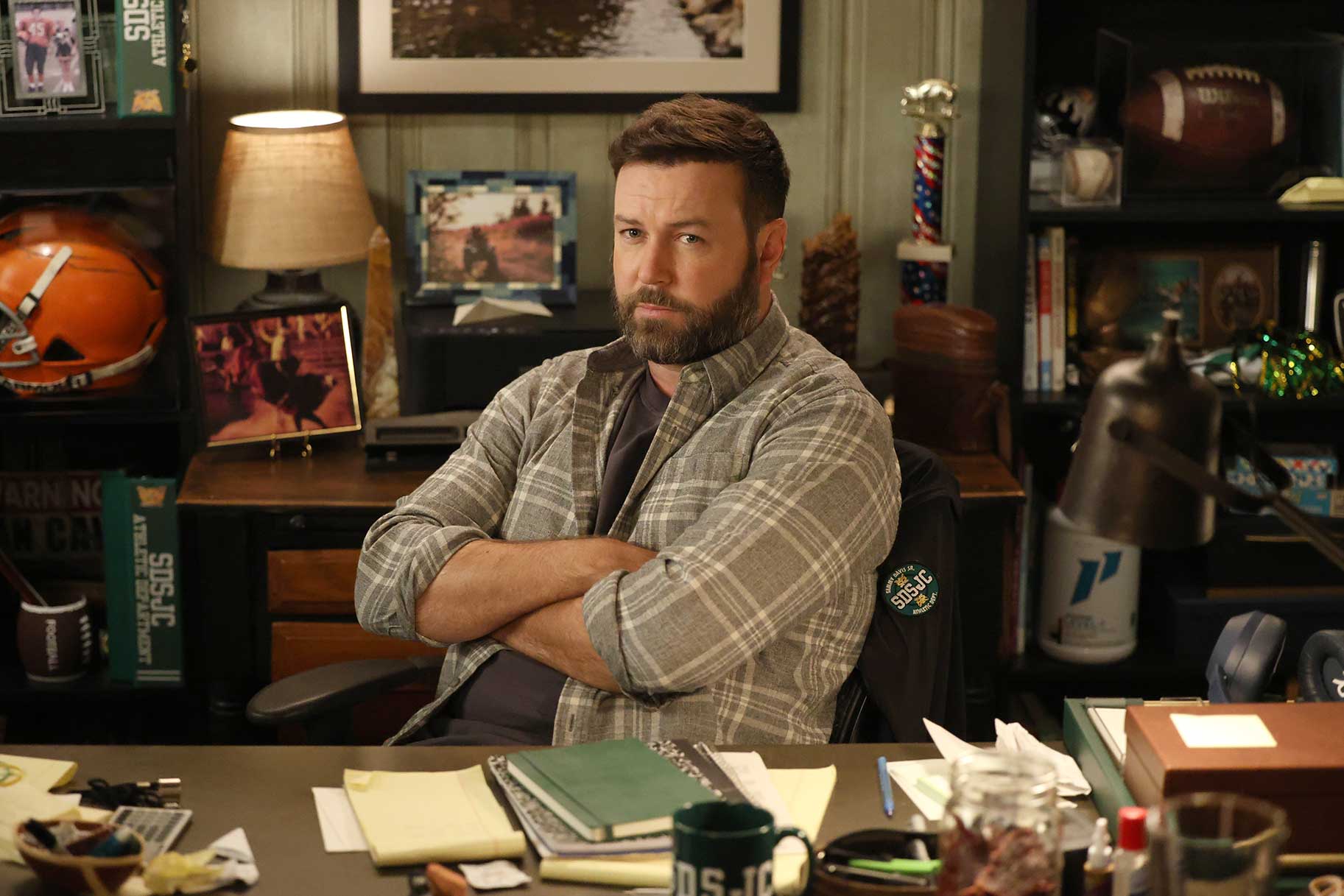 As Boon, Killam navigates the complexities of life as a football coach and a supportive husband to cheerleading coach Courteney Potter, portrayed by Jenn Lyon. This contrasts sharply with the slapstick humor that fans might typically expect from his previous roles, showcasing his versatile range as an actor.