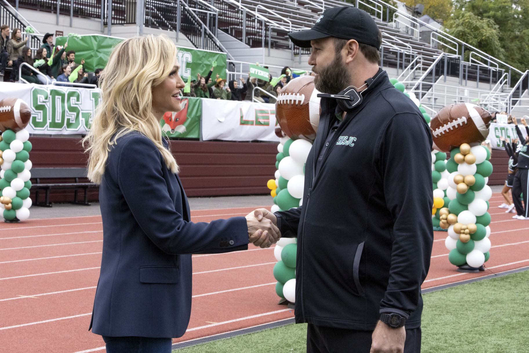 In this episode, cheerleading coach Courteney, played by Jenn Lyon, returns to her former workplace at Sammy Davis Sr. Junior College, the school from which she was fired. The homecoming game sets the stage for tension, as instead of cheering for her husband Boon’s team, her newly-formed squad at Headltston State Junior College will root for their own players. This twist heightens the stakes in both their professional lives and personal relationship.